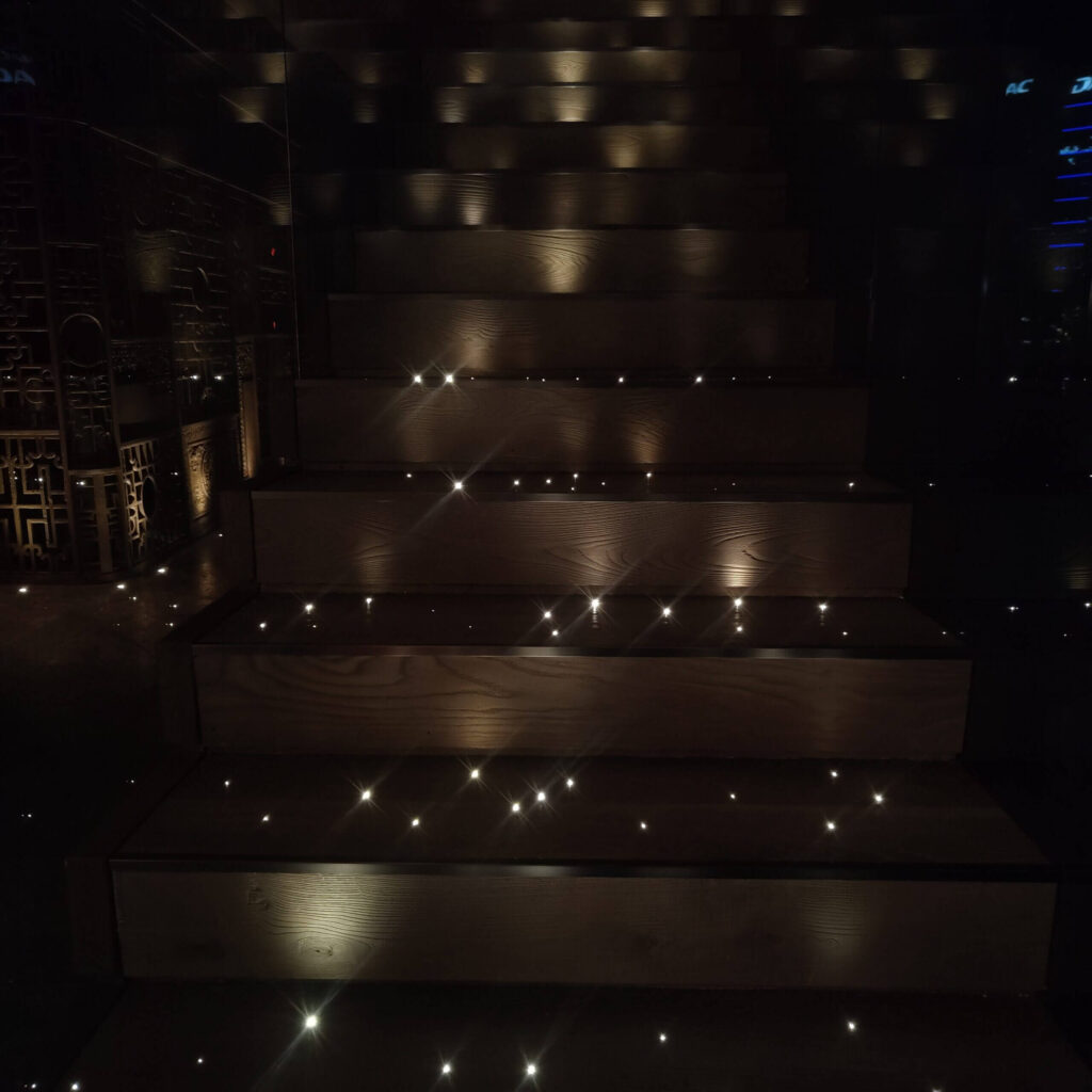 Why limit Fibre Optics to the sturdy Paver? Whilst we offer a wide range of waterproof fixtures to suit everyone’s taste we have recently been working with lighting Designers and Clients developing our systems to create unique designs and patterns into Flooring and within Staircase Steps and have produced showstopping visual effects and an untapped medium for this versatile lighting. The Fibrepros team are busy molding raw fibre into natural materials, concrete and resin structures and creating quite a sparkle.