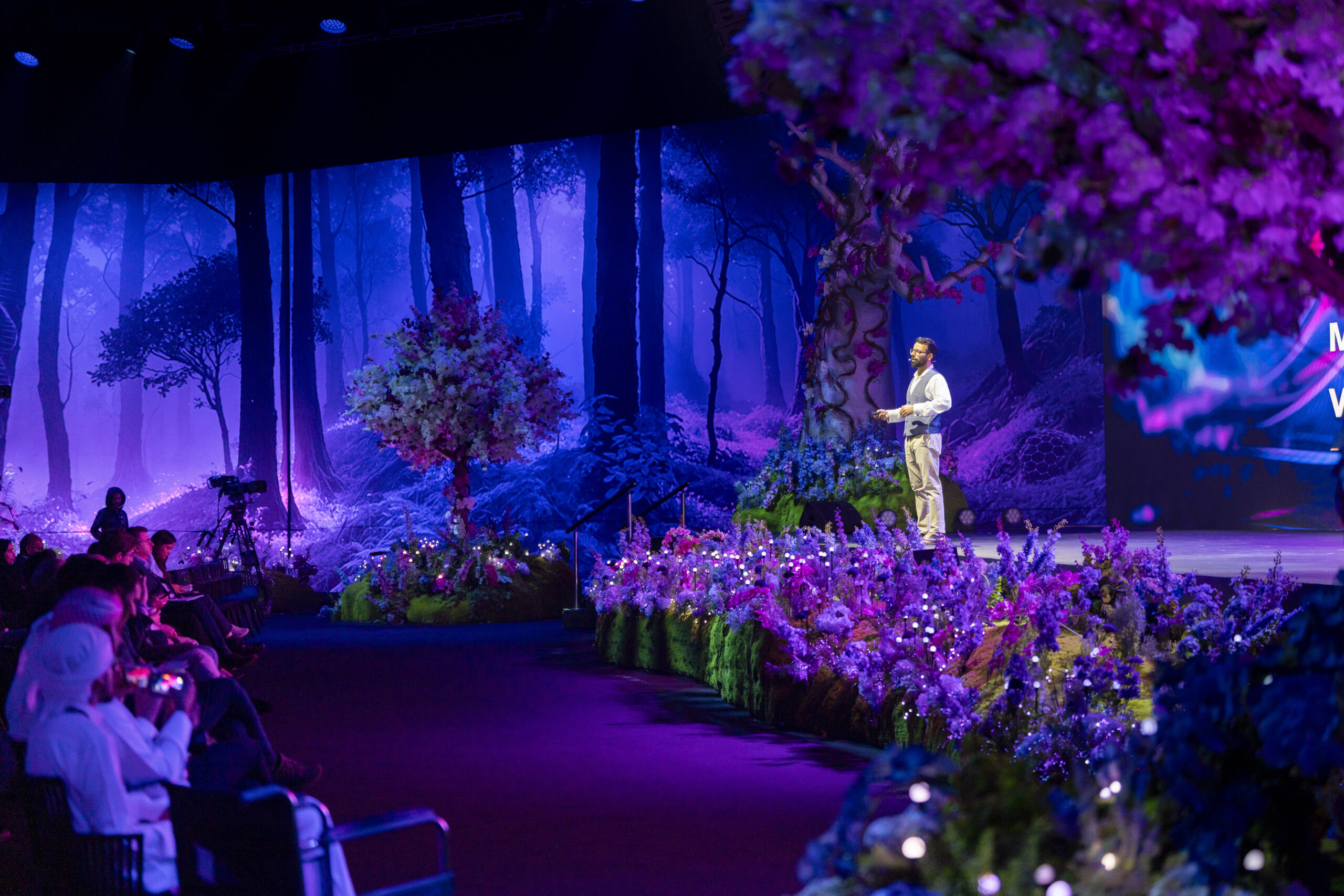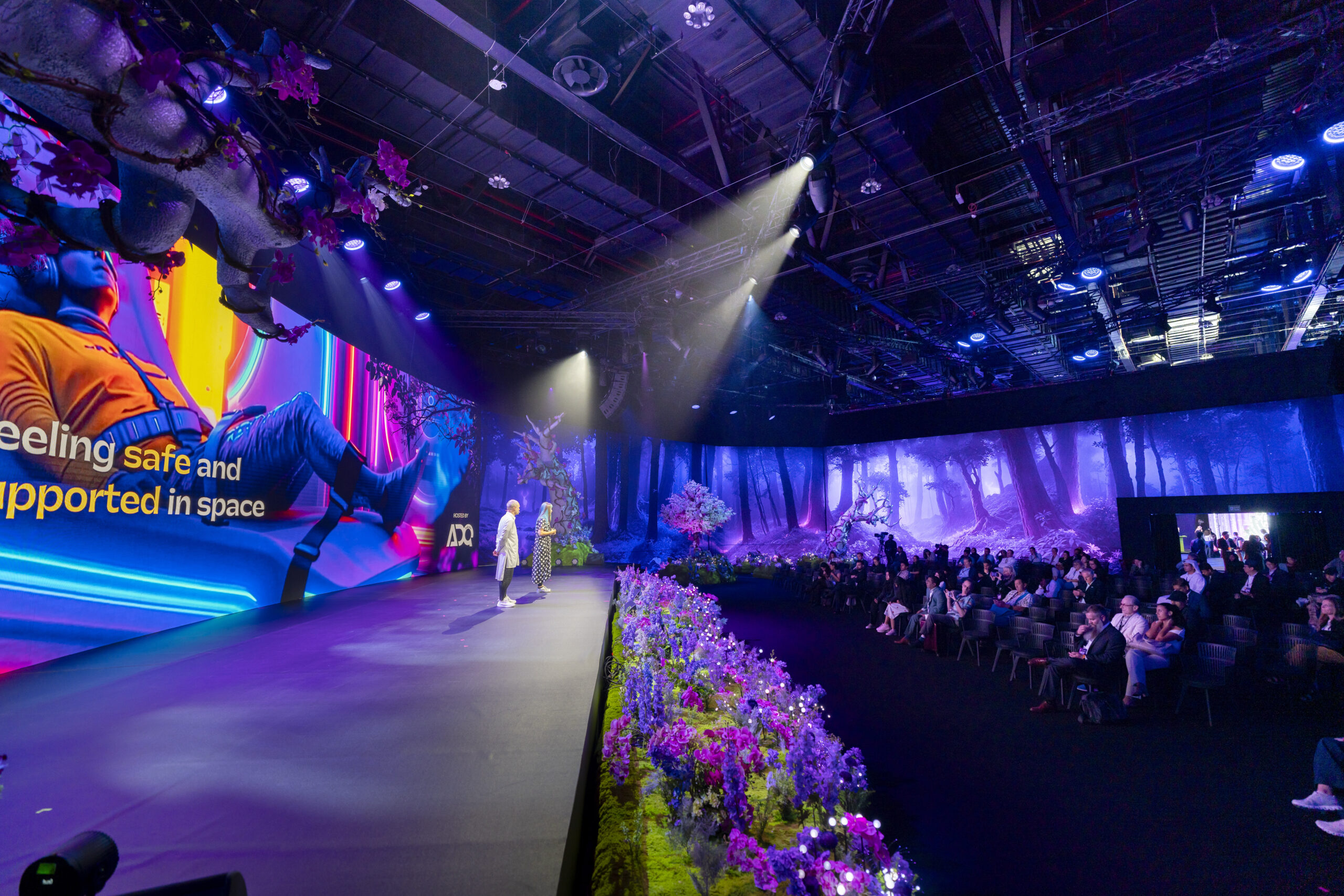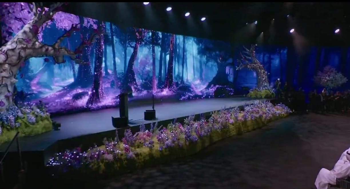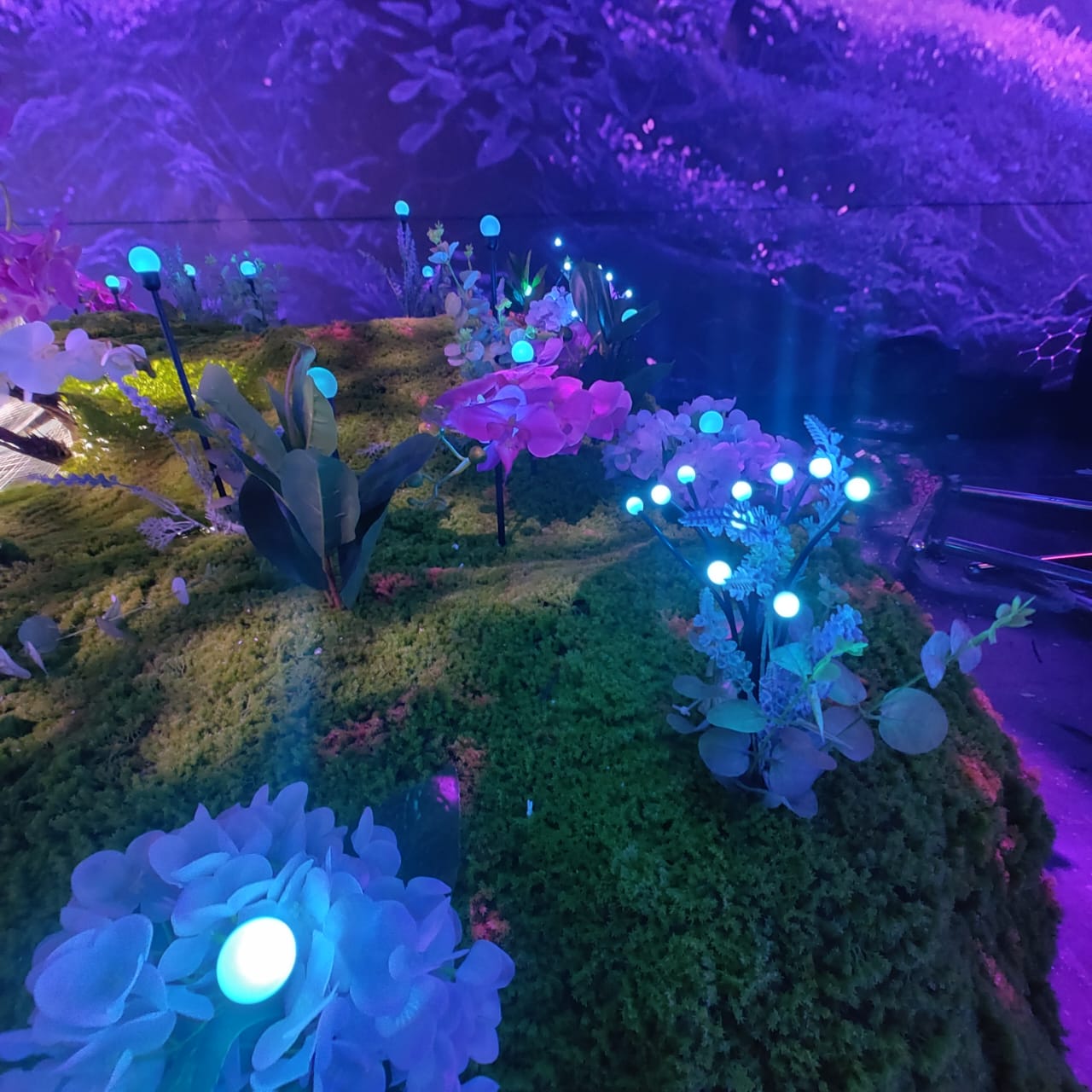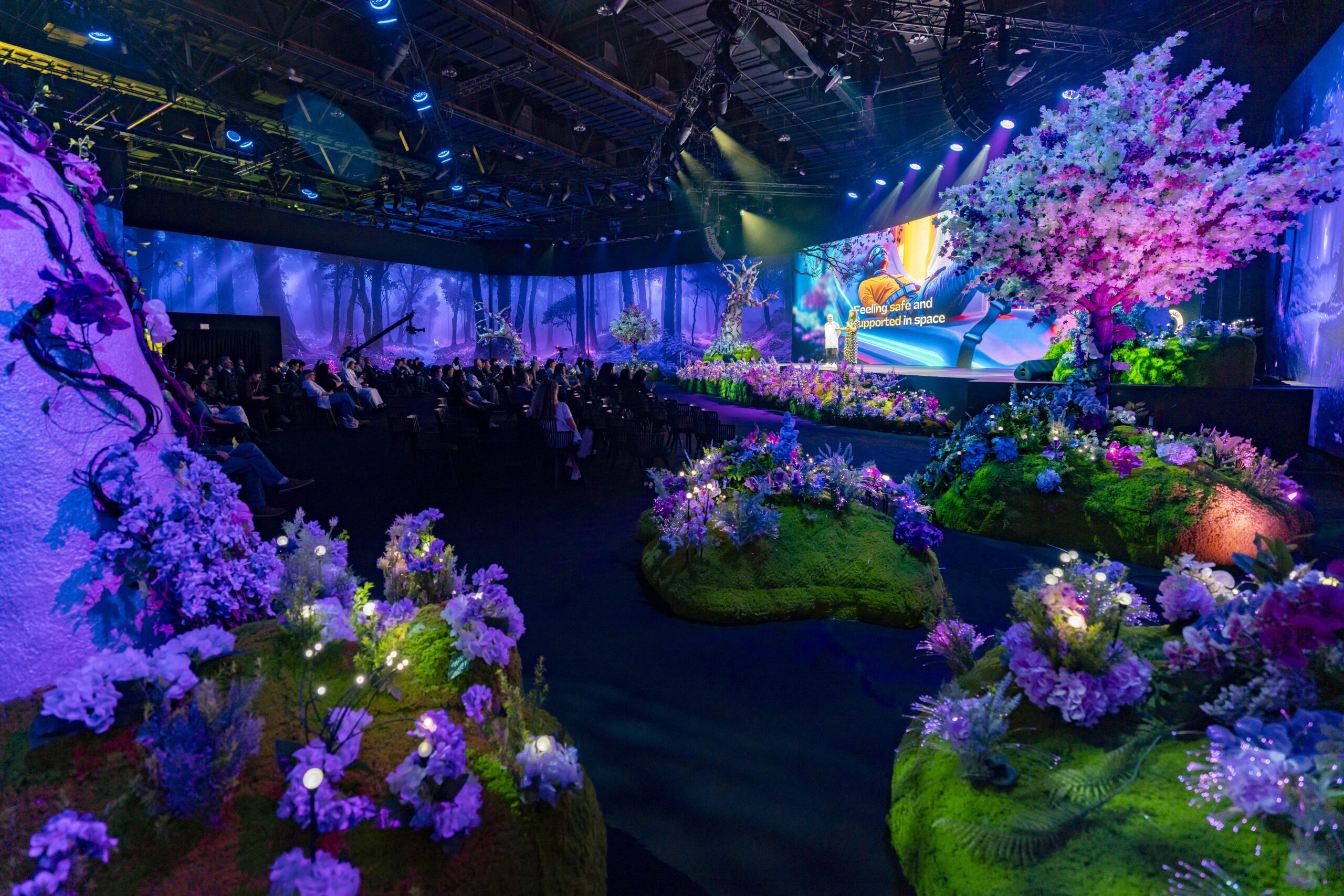 We used a combination of our FP-Reed 5, Pearl lenses with Endglow fibre, Weave fibre wrapped around make-shift trees and bundles of fibre grass to bring an Avatar-esque feel to the big stage. Neon colours, woodland atmosphere and frontiers in the world of AI – it makes for a show not many forget!
