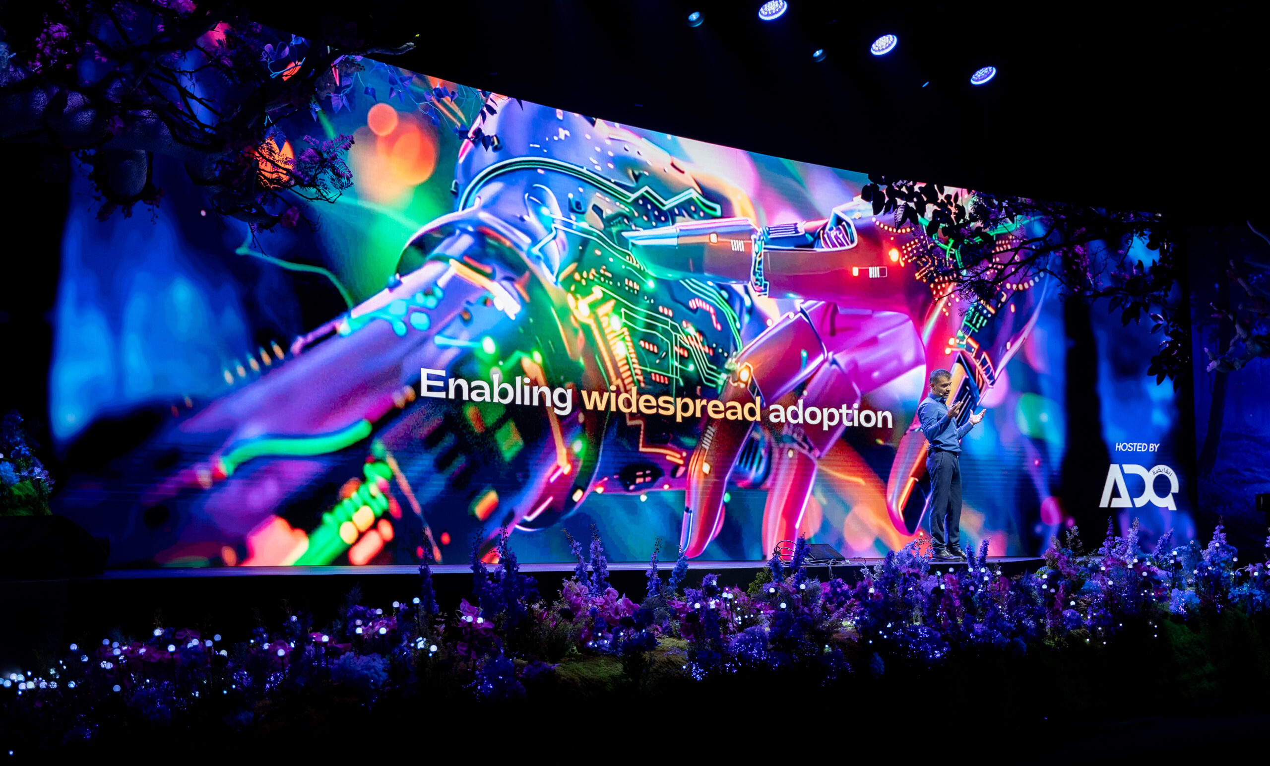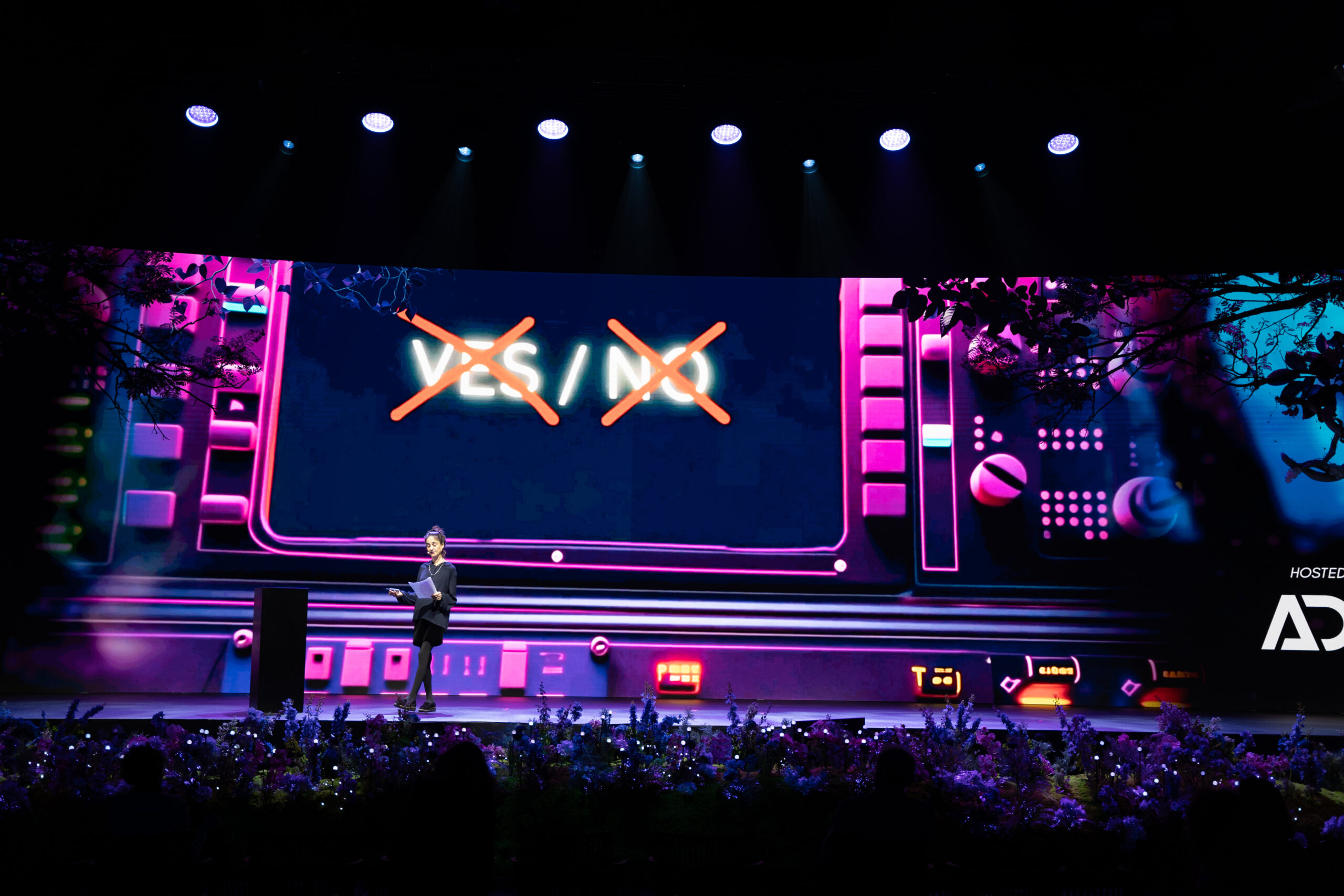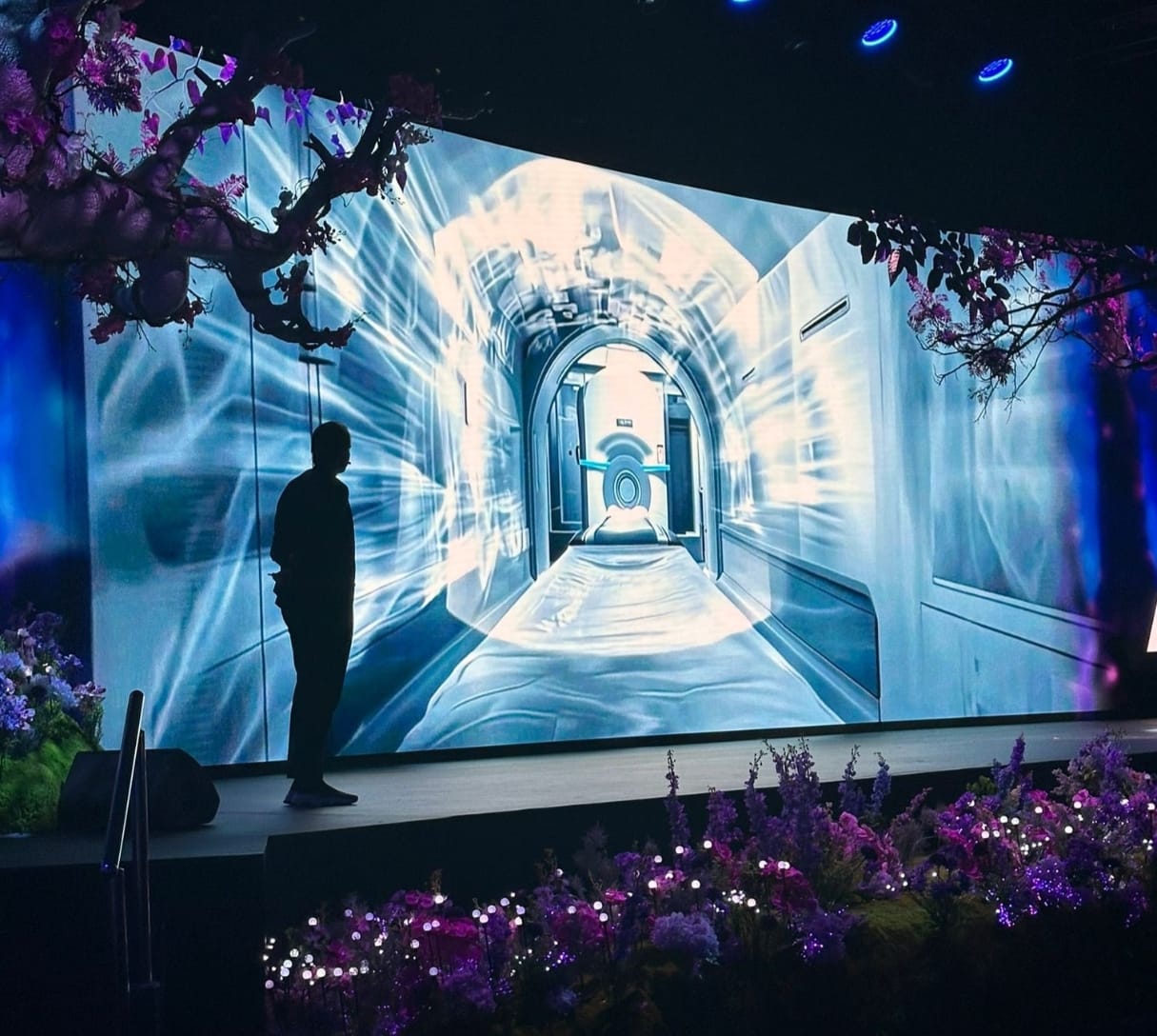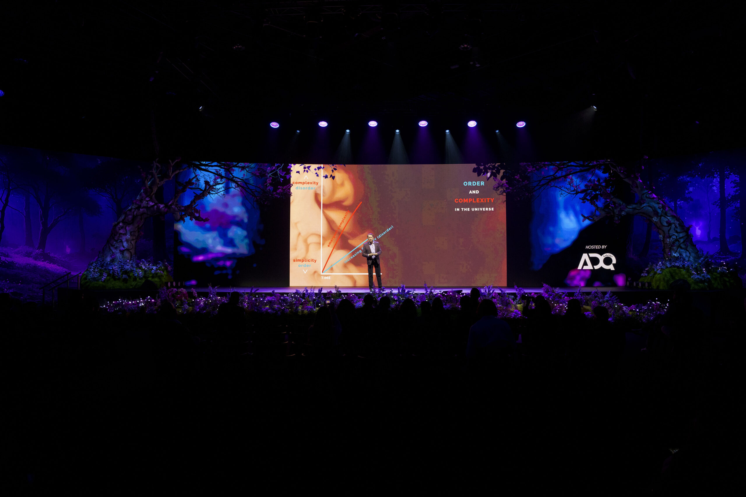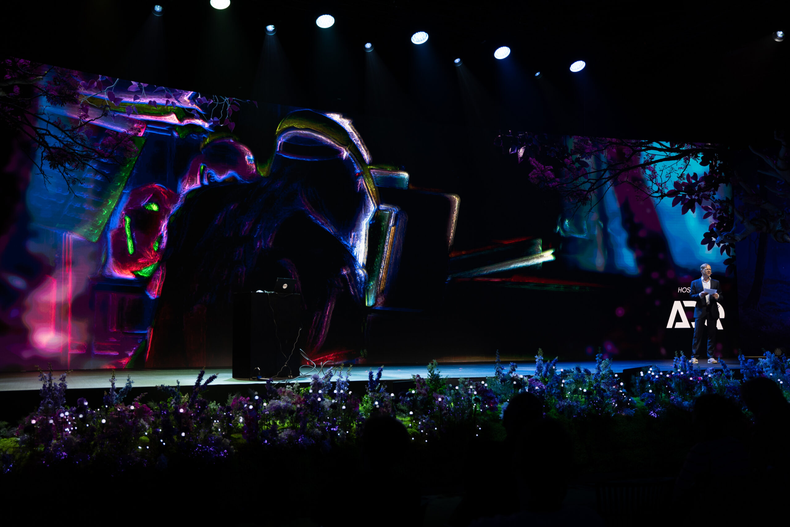 We used a combination of our FP-Reed 5, Pearl lenses with Endglow fibre, Weave fibre wrapped around make-shift trees and bundles of fibre grass to bring an Avatar-esque feel to the big stage. Neon colours, woodland atmosphere and frontiers in the world of AI – it makes for a show not many forget!