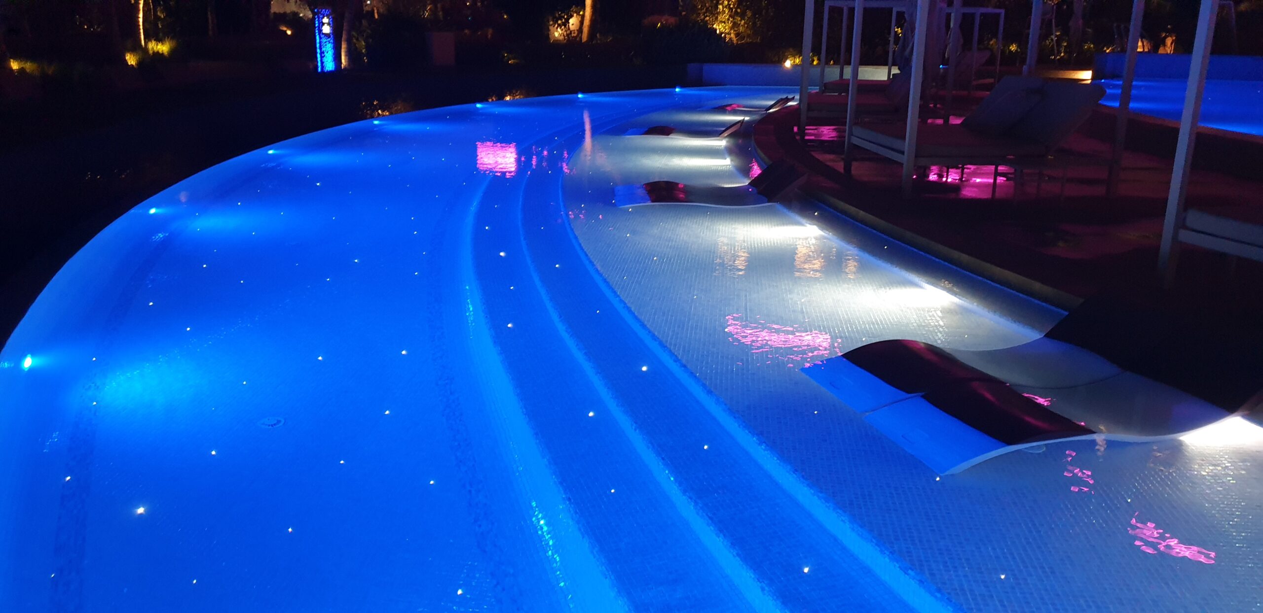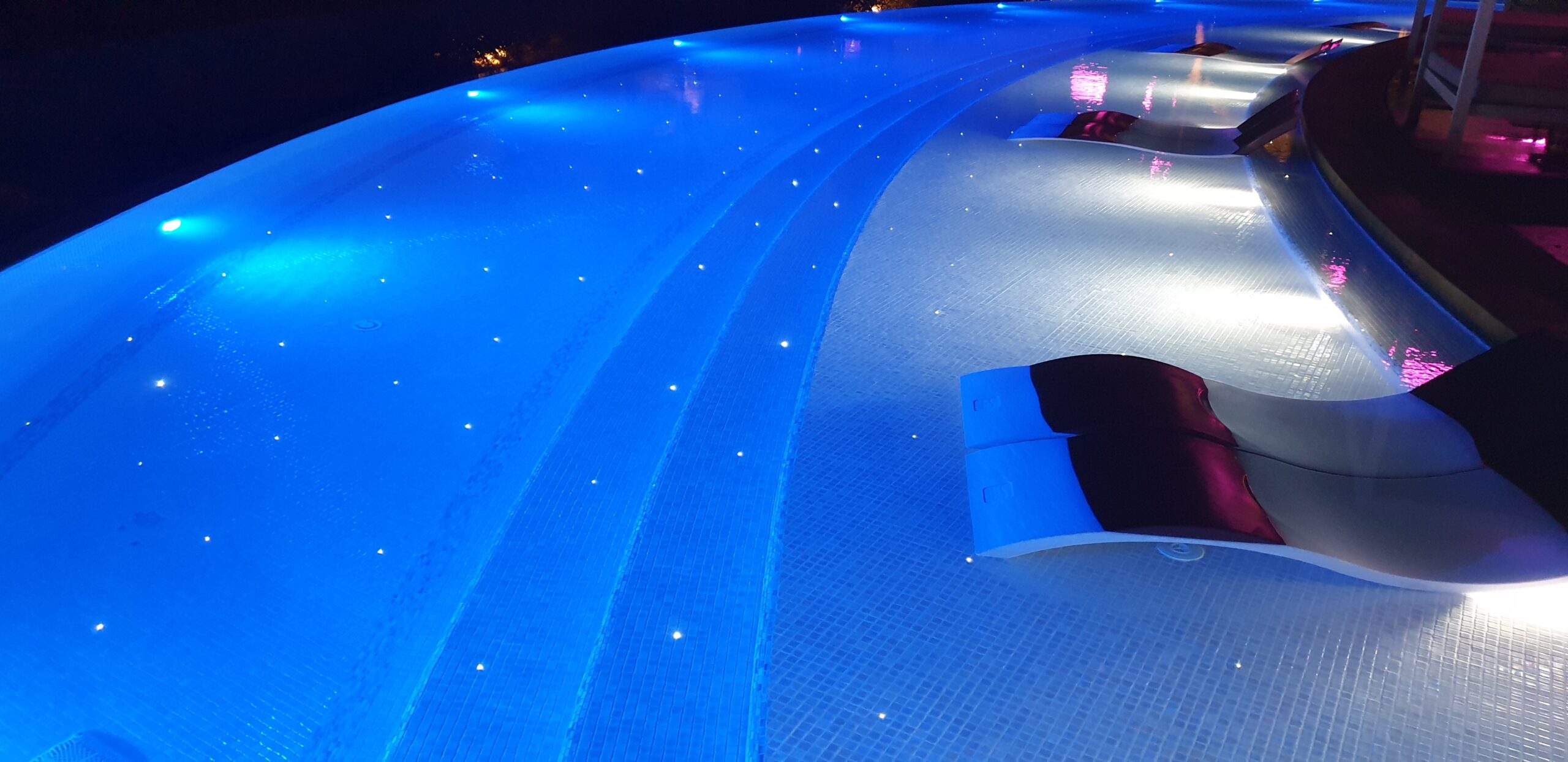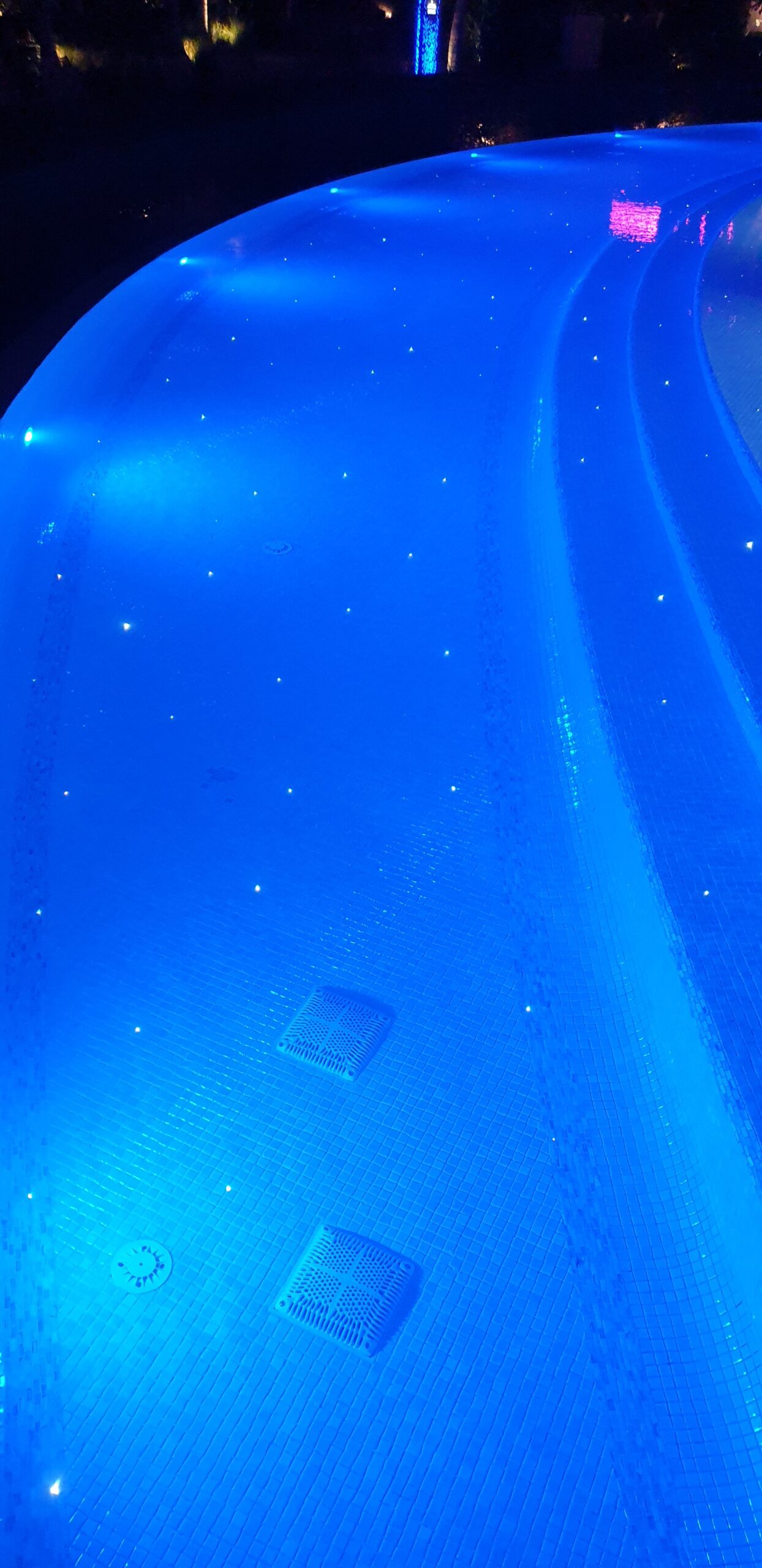 Using our FP-SM1 fitting we knew this would be a pool to remember. We specifically used this fitting as through the day time it’s unseen, but as night comes around, it creates a beautiful sparkle that twinkles all night long.